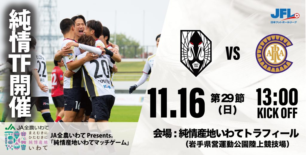 2025年11月16日(日)開催の第27回日本フットボールリーグ(JFL)第29節いわてグルージャ盛岡 vs クリアソン新宿のマッチデープログラム!
