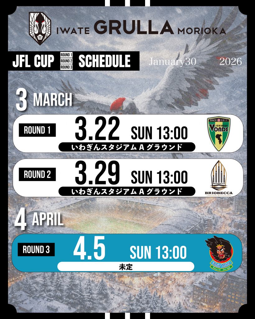 | 2026J F L C U P第1節、第2節およびホーム開幕戦の開催会場・日時のお知らせ |
