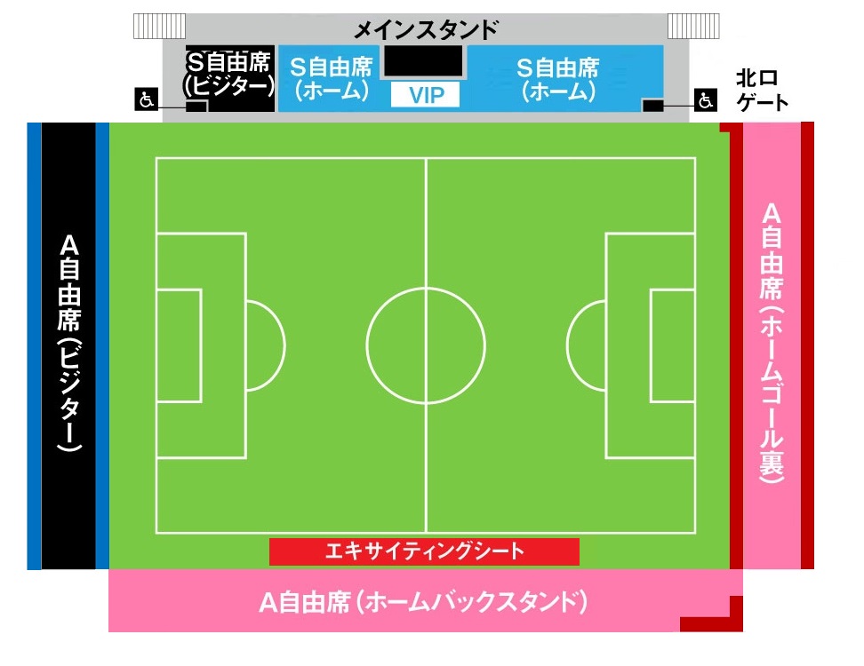・大旗の使用や鳴り物を使った応援は、「ホームゴール裏A自由席」および「アウェイゴール裏A自由席」でお願いいたします。