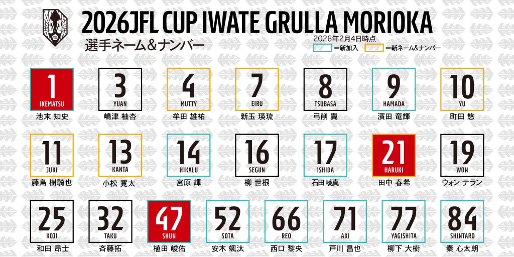 【2026J F L C U P選手背番号】